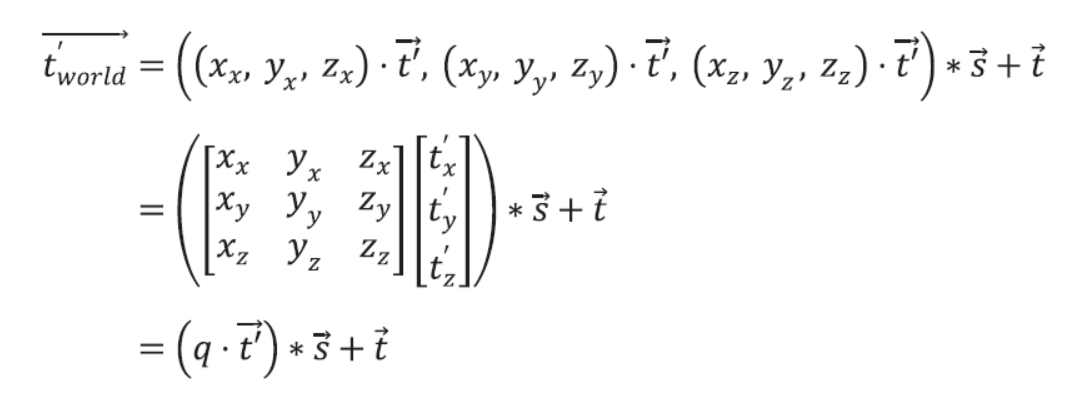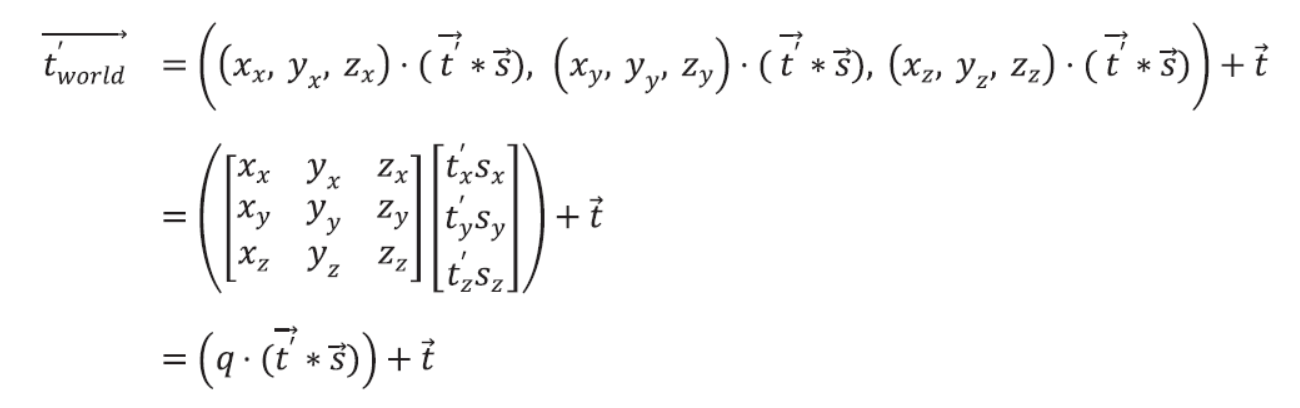 result.SetPosition(InParentWorldTransform.GetPosition() + InParentWorldTransform. GetScale() * (InParentWorldTransform.GetRotation() * GetPosition()));