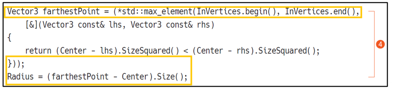 ➍ 중점에서 거리가 가장 먼 점의 위치를 구하고, 이 점과 중점 사이의 거리를 반지름으로 지정한다.