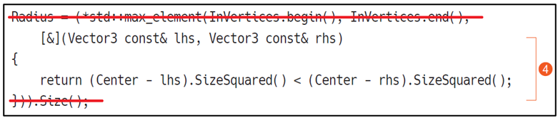 ➍ 중점으로부터 모든 점의 거리를 구하고 이 중에서 가장 큰 값을 반지름으로 지정한다.