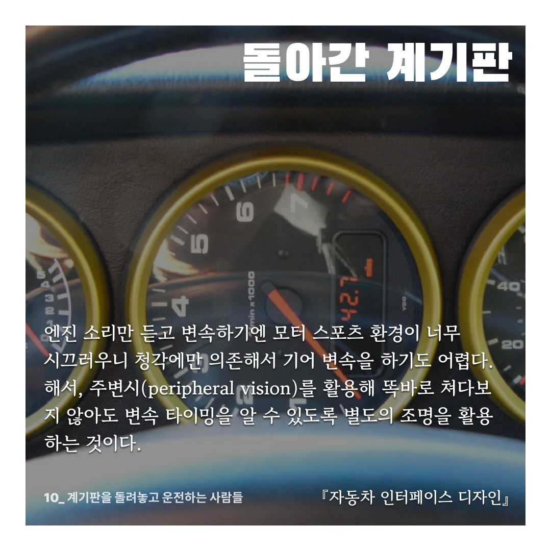 자동차의 외관이 주는 시각적 매력이야 말해 무엇하겠냐마는, 나는 자동차 내부의 인터페이스들을 하나둘 공부하면서 이 안쪽에서 벌어진 사람 냄새나는 역사가 너무나 재밌었다. 기계이면서 공간이고, 도구이면서 생활 방식인 자동차가 백 년이라는 시간 동안 지지고 볶아온 흔적들이 바로 오늘 우리가 타고 다니는 자동차란 물건이다. 게다가 지금은 자동차가 전기화, 디지털화하는 대격변기에 놓여 있으니 과거의 변화들을 돌아보고, 다가올 미래를 준비하는 것도 의미가 있겠다는 생각을 했다. ‘온고지신’이라고 하지 않던가?