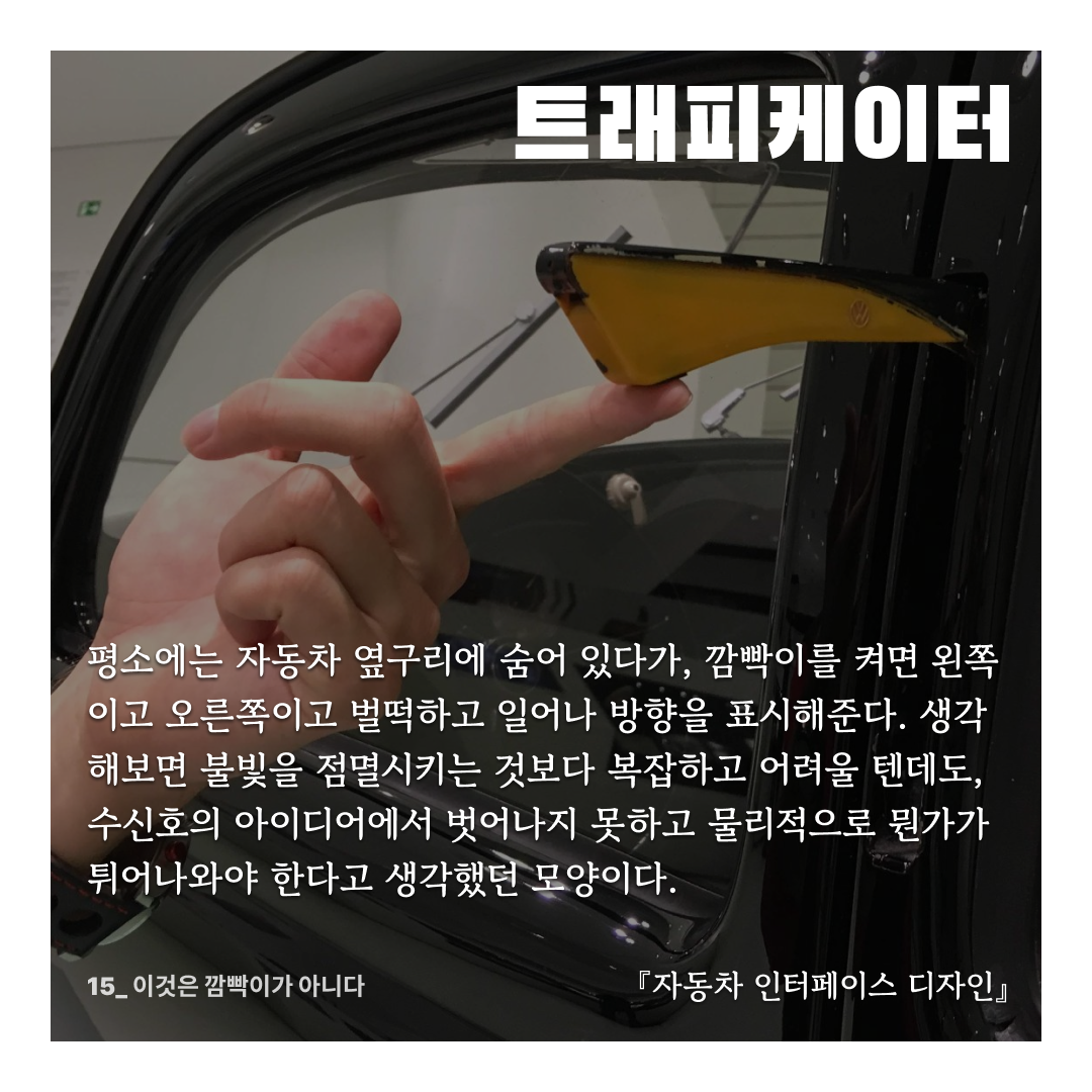 자동차의 외관이 주는 시각적 매력이야 말해 무엇하겠냐마는, 나는 자동차 내부의 인터페이스들을 하나둘 공부하면서 이 안쪽에서 벌어진 사람 냄새나는 역사가 너무나 재밌었다. 기계이면서 공간이고, 도구이면서 생활 방식인 자동차가 백 년이라는 시간 동안 지지고 볶아온 흔적들이 바로 오늘 우리가 타고 다니는 자동차란 물건이다. 게다가 지금은 자동차가 전기화, 디지털화하는 대격변기에 놓여 있으니 과거의 변화들을 돌아보고, 다가올 미래를 준비하는 것도 의미가 있겠다는 생각을 했다. ‘온고지신’이라고 하지 않던가?