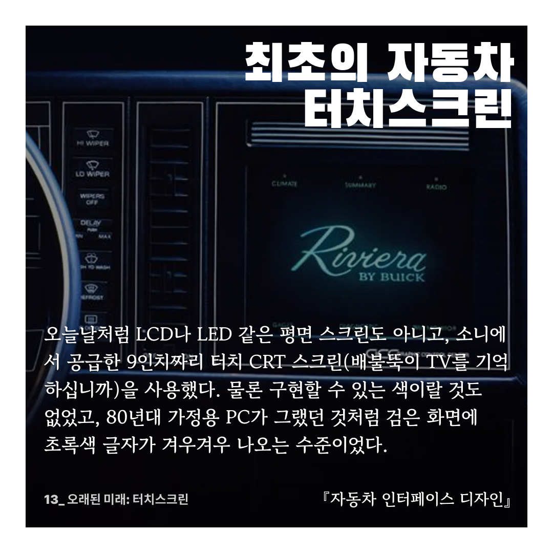 다른 한편으론, 주제가 자동차일 뿐 사람의 생활 방식과 시대상을 반영하는 것은 모든 UX 디자이너들에게 좋은 훈련(practice)이 될 수 있으리라 생각했다. 인공물을 대상으로 하는 그 어떤 디자인도 사람에 대한 이해와 떨어질 수 없으니만큼, 자동차 인터페이스의 지난 세월들을 훑어보는 것이 모든 UX 연구자들에게 영감을 줄 수 있지 않을까 소망해본다.
