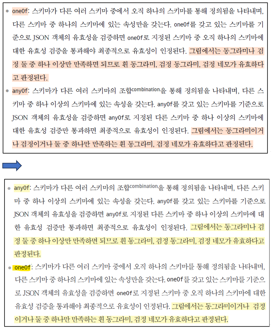 p341. anyOf와 oneOf 순서와 마지막 문장 교환(본문 7~9째 줄, 본문 13~14째 줄)