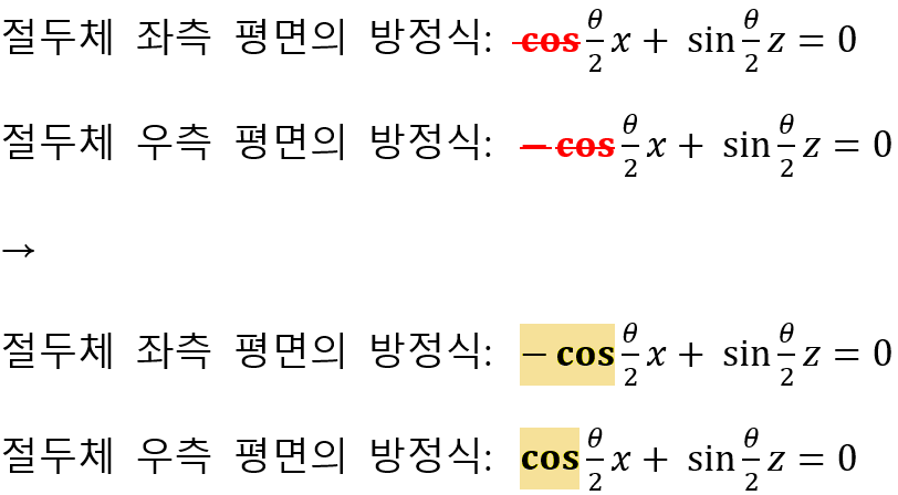 Plane(Vector3(-pCos, 0.f, pSin), 0.f), // -Y