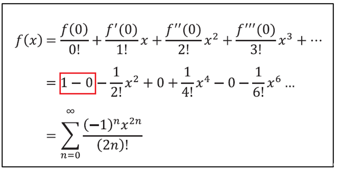 p550. 마지막 수식, cos 함수의 매클로린 급수 전개식 수정