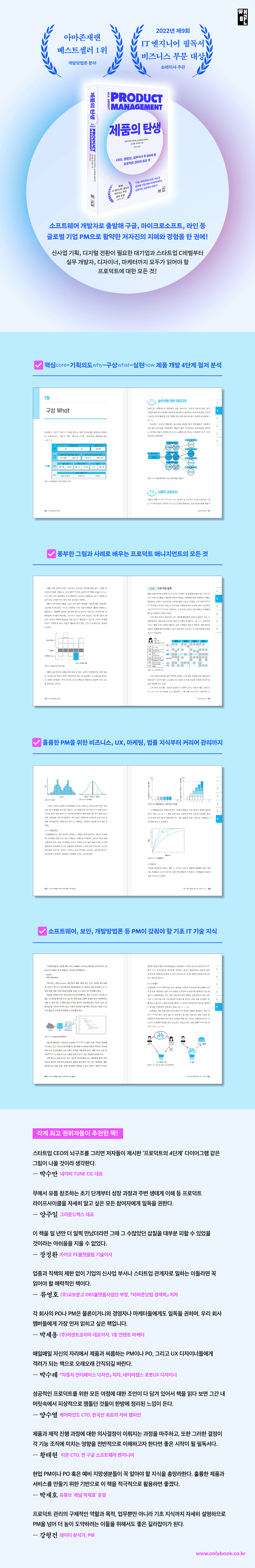 기획, 개발부터 사업과 마케팅, 디자인을 포함한 모든 직군에게 시야를 폭넓게 열어줄 것이며, 특히 PO, PM 직군 지망생들은 직업 능력 개발의 로드맵으로도 활용할 수 있을 것이다.