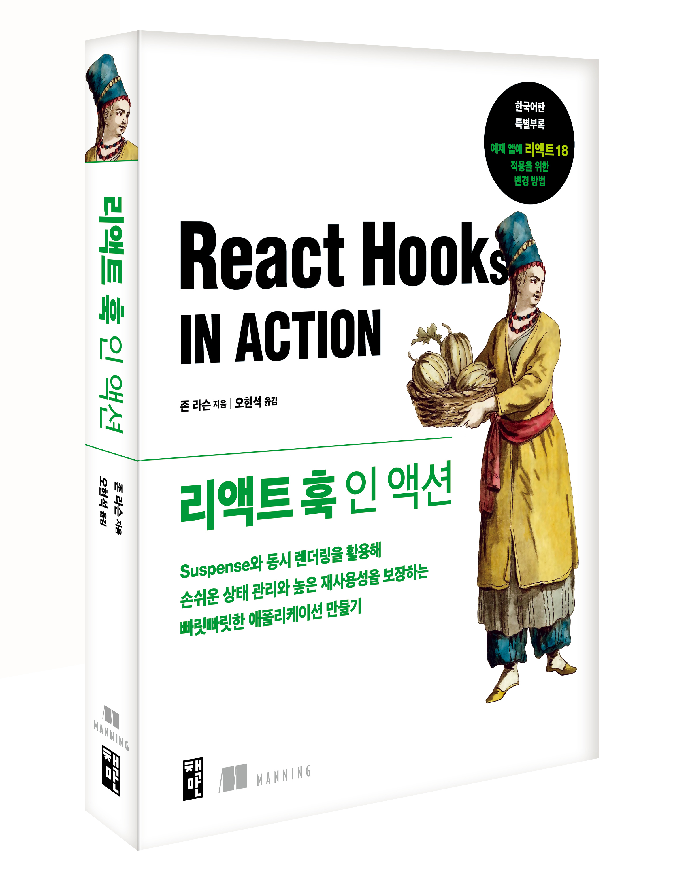 이 책은 리액트의 여러 가지 기능 중에서도 특히 훅을 자세히 다룬다. 자바스크립트와 웹 개발을 어느 정도 알고, 기본적인 리액트 개발을 배운 개발자라면 이 책을 통해 훅을 더 잘 이해하고 자신만의 커스텀 훅을 작성해 프론트엔드 프로그램을 좀 더 모듈화할 수 있을 것이다.