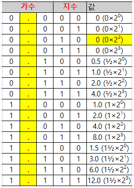 p70. 표 1-8 '부동소수점 2진수' 중에서