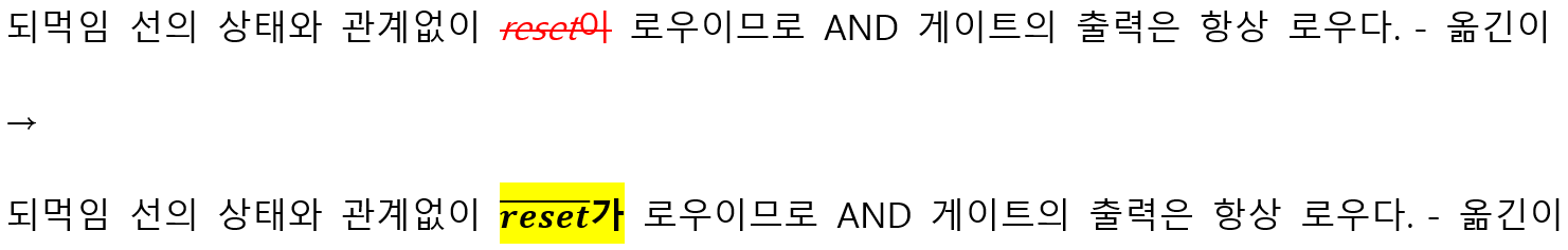 두 비트에 대한 XOR 연산(a XOR b)은 (a OR b) AND (NOT(a AND b))와 같다.