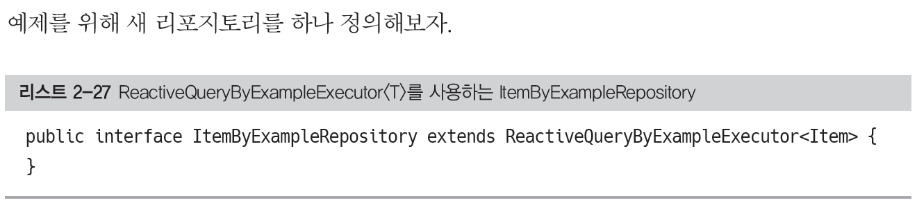 리스트 2-27 ReactiveQueryByExampleExecutor<T>를 사용하는 ItemRepository
