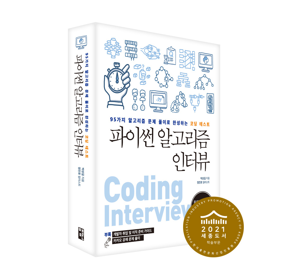 『파이썬 알고리즘 인터뷰』는 상당히 보기 드문 종합 코딩 인터뷰 준비 서적입니다. 먼저, 기초 컴퓨터과학 지식에 대한 간결하지만 깊이 있는 설명, 그리고 파이썬에 대한 수준 높은 정보가 담겨 있습니다. 이 책에서 다루는 문제는 실제 인터뷰에서 출제되는 인기 문제입니다. 가장 돋보이는 것은 현업에 계신 저자가 손수 작성하신 프로 수준의 풀이입니다. 번역서가 아니라 직접 집필한 국내서라는 점, 눈에 쏙 들어오는 멋진 그림은 이 책의 가치를 더욱 높여줍니다. 면접관 입장에서도 정말 재미있게 읽고, 큰 공부가 된 책이었습니다.