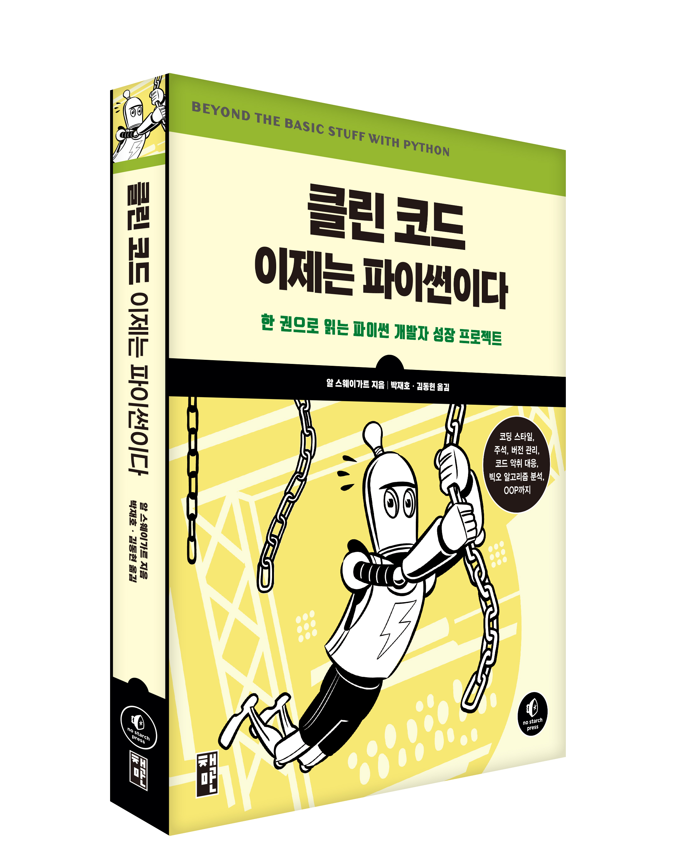이 책은 기존 자바 중심으로 설명하고 있는 클린 코드 도서와는 달리 파이썬을 중심으로 설명하므로, 가독성 높으며 유지 보수와 기능 확장이 쉬운 파이썬 코드를 위한 길라잡이로 생각하시면 좋겠습니다. 이 책의 몇 가지 특징을 정리하면 다음과 같습니다.